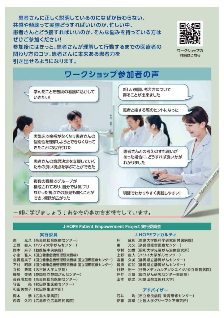 第7回医療者がリードする「がん患者力向上」のためのワークショップ(J-HOPE主催)