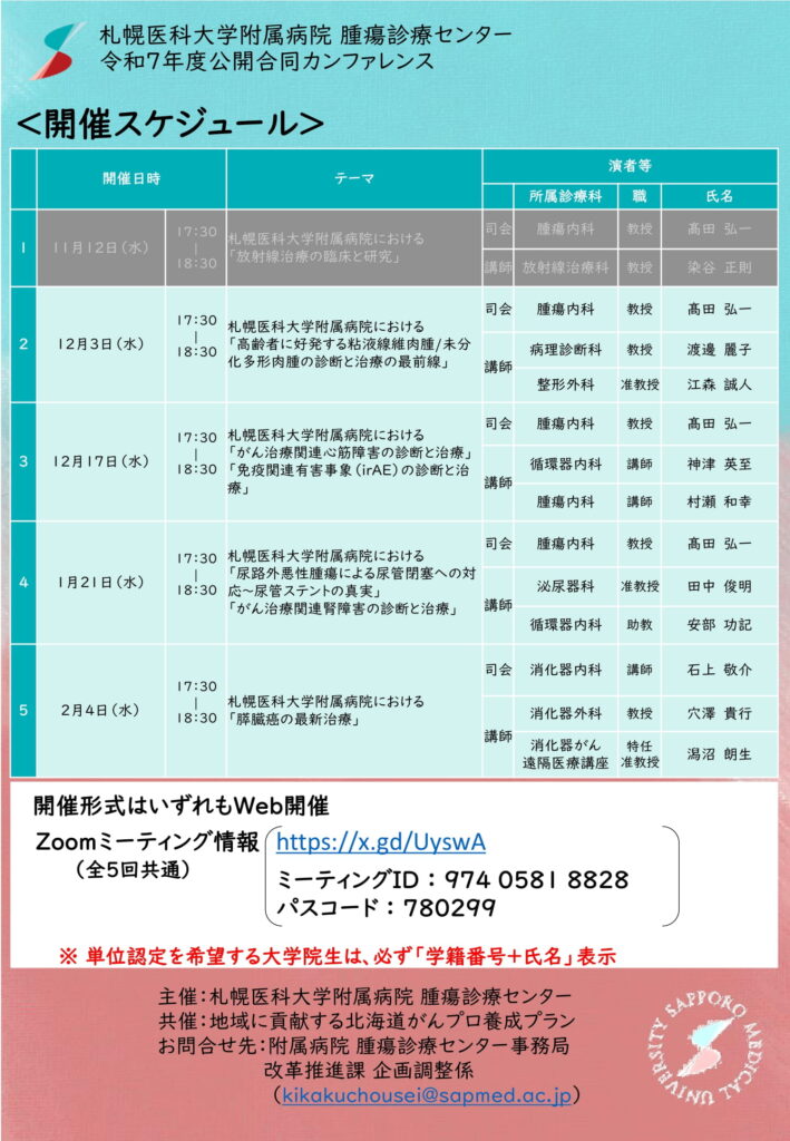 令和7年度公開合同カンファレンス「第2回 札幌医科大学附属病院における『高齢者に好発する粘液線維肉腫/未分化多形肉腫の診断と治療の最前線』」