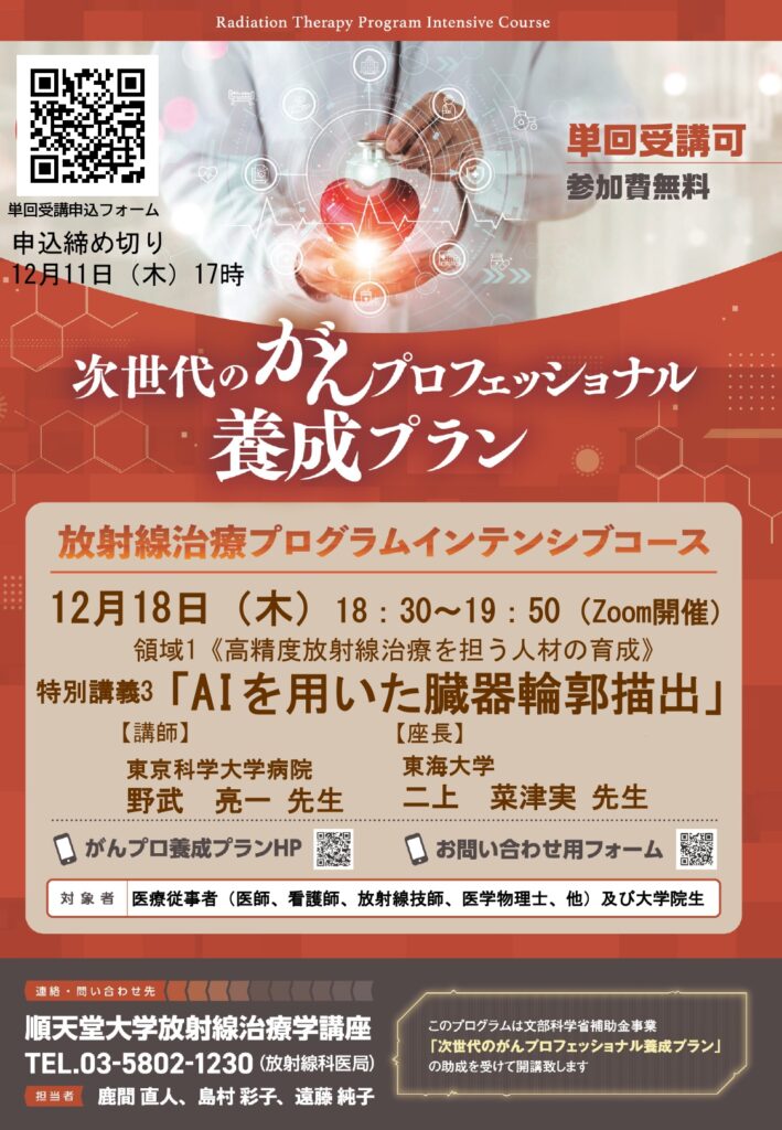 コース名:緩和的放射線治療・密封小線源治療・高精度放射線治療の質の向上と普及を担う人材養成コース