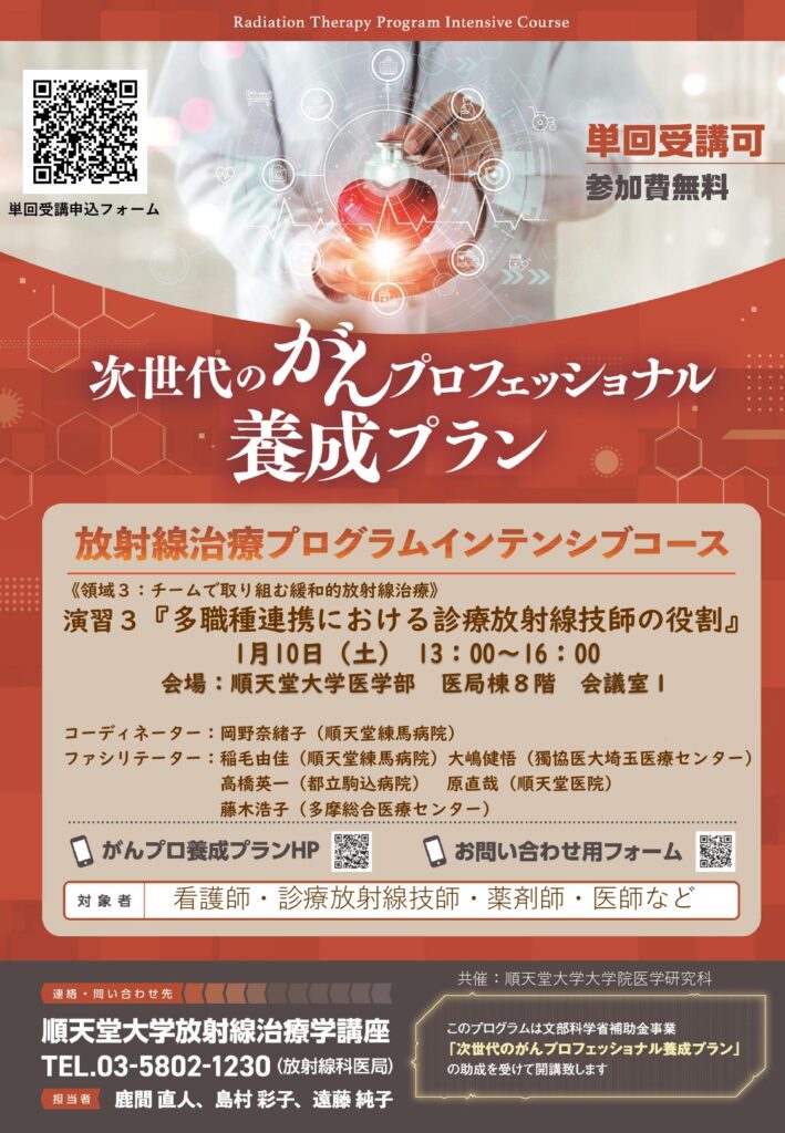 コース名:緩和的放射線治療・密封小線源治療・高精度放射線治療の質の向上と普及を担う人材養成コース
