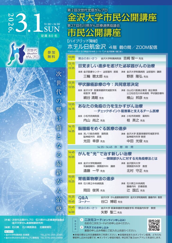 第2回次世代北信がんプロ金沢大学市民公開講座