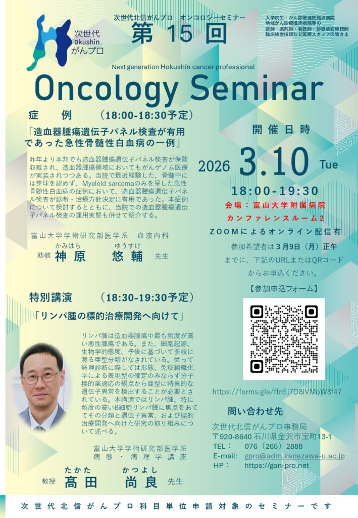 次世代北信がんプロ 「第15回オンコロジーセミナー」