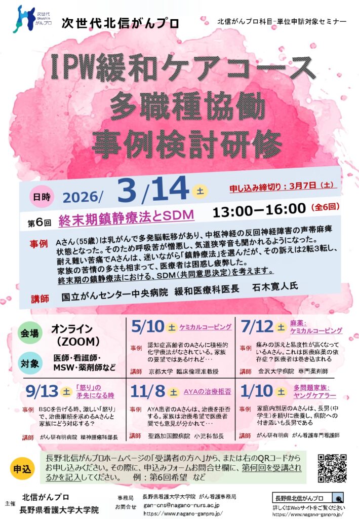 IPW緩和ケアコース多職種協働事例検討研修第6回「終末期鎮静療法とSDM」